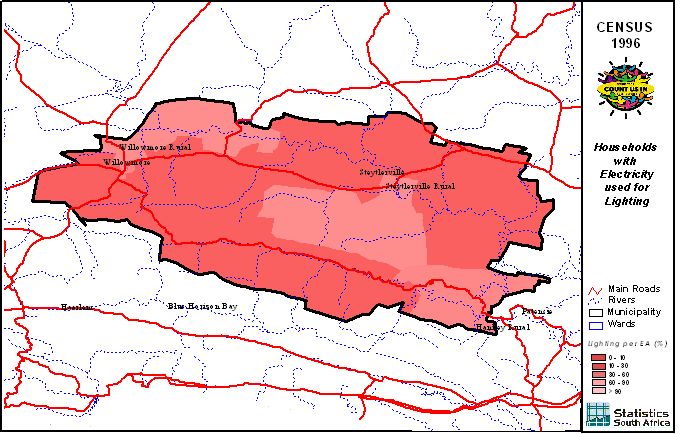 | Ward | Households | Formal Dwellings(%) | Telephone at Home(%) | Electricity(%) | Sanitation(%) | Piped Water to Dwelling(%) |