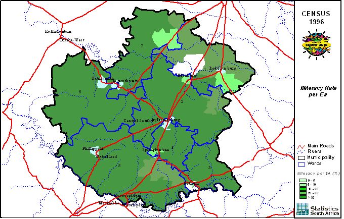 | Ward | Population | African | Coloured | Indian | White | Other | Male | Female | Unmarried | Married | Illiterate |