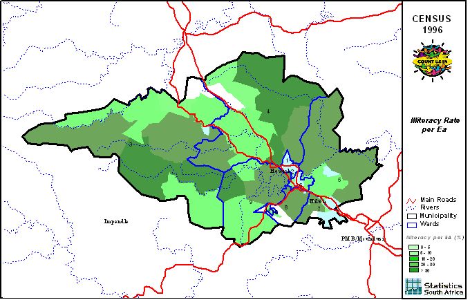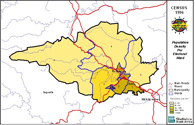 | Ward | Population | African | Coloured | Indian | White | Other | Male | Female | Unmarried | Married | Illiterate |