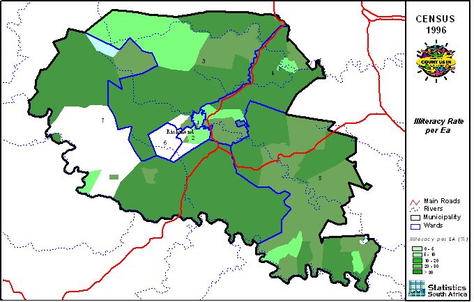| Ward | Population | African | Coloured | Indian | White | Other | Male | Female | Unmarried | Married | Illiterate |