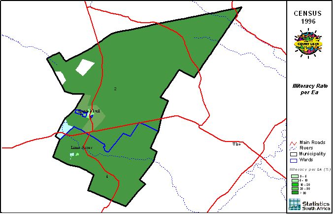 | Ward | Population | African | Coloured | Indian | White | Other | Male | Female | Unmarried | Married | Illiterate |