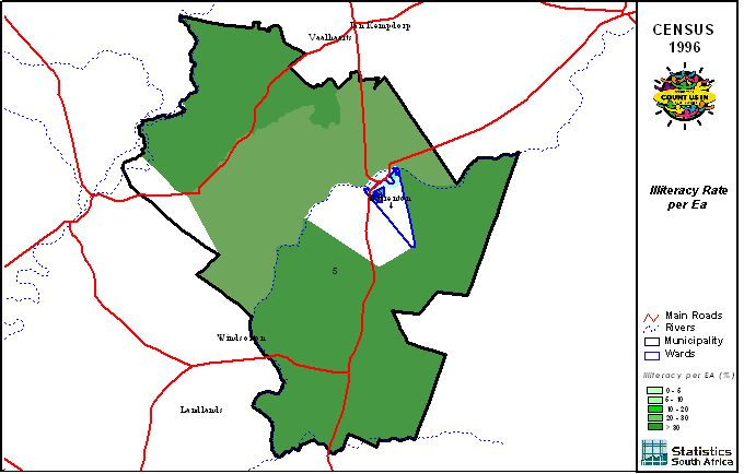 | Ward | Population | African | Coloured | Indian | White | Other | Male | Female | Unmarried | Married | Illiterate |