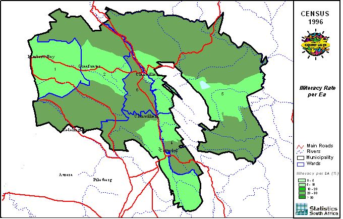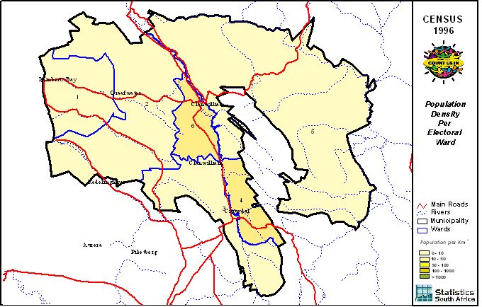 | Ward | Population | African | Coloured | Indian | White | Other | Male | Female | Unmarried | Married | Illiterate |