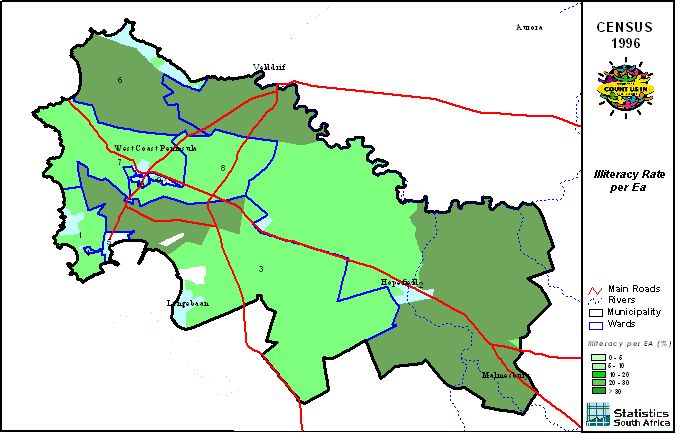 | Ward | Population | African | Coloured | Indian | White | Other | Male | Female | Unmarried | Married | Illiterate |