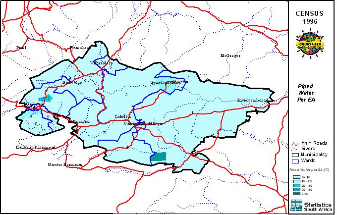 | Ward | Households | Formal Dwellings(%) | Telephone at Home(%) | Electricity(%) | Sanitation(%) | Piped Water to Dwelling(%) |
