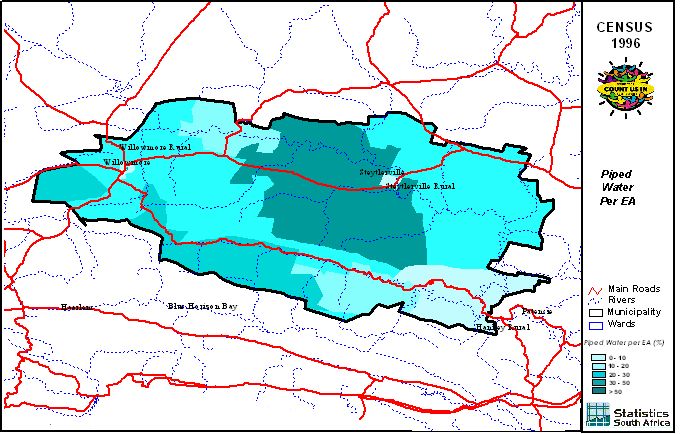 | Ward | Households | Formal Dwellings(%) | Telephone at Home(%) | Electricity(%) | Sanitation(%) | Piped Water to Dwelling(%) |