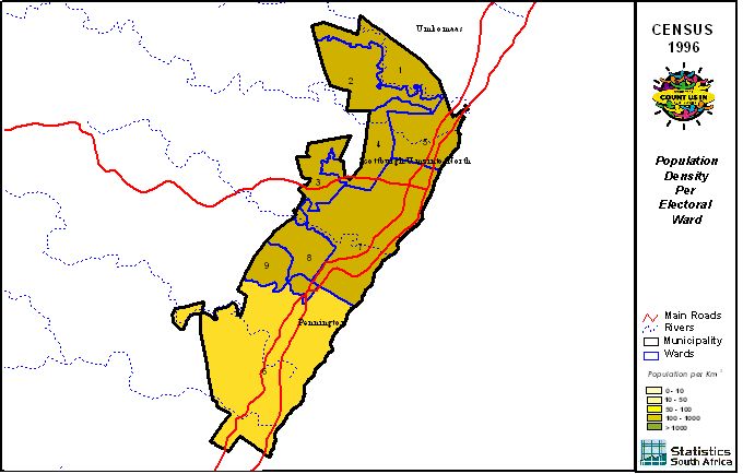 | Ward | Population | African | Coloured | Indian | White | Other | Male | Female | Unmarried | Married | Illiterate |