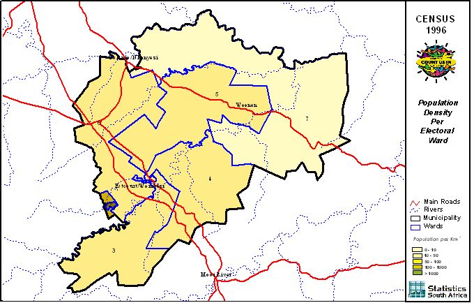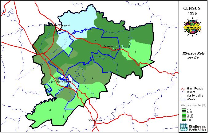 | Ward | Population | African | Coloured | Indian | White | Other | Male | Female | Unmarried | Married | Illiterate |