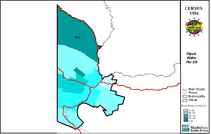 | Ward | Households | Formal Dwellings(%) | Telephone at Home(%) | Electricity(%) | Sanitation(%) | Piped Water to Dwelling(%) |