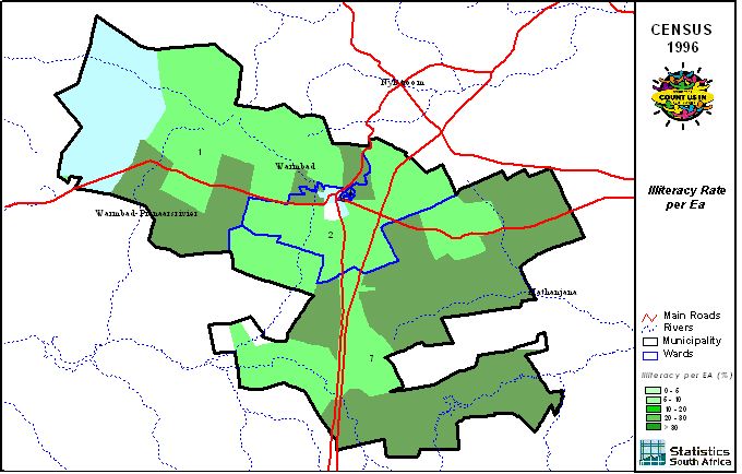 | Ward | Population | African | Coloured | Indian | White | Other | Male | Female | Unmarried | Married | Illiterate |