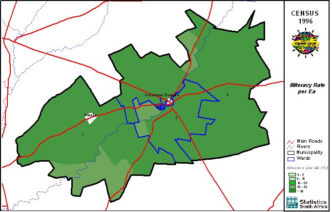 | Ward | Population | African | Coloured | Indian | White | Other | Male | Female | Unmarried | Married | Illiterate |