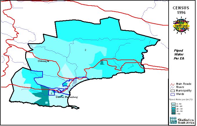 | Ward | Households | Formal Dwellings(%) | Telephone at Home(%) | Electricity(%) | Sanitation(%) | Piped Water to Dwelling(%) |