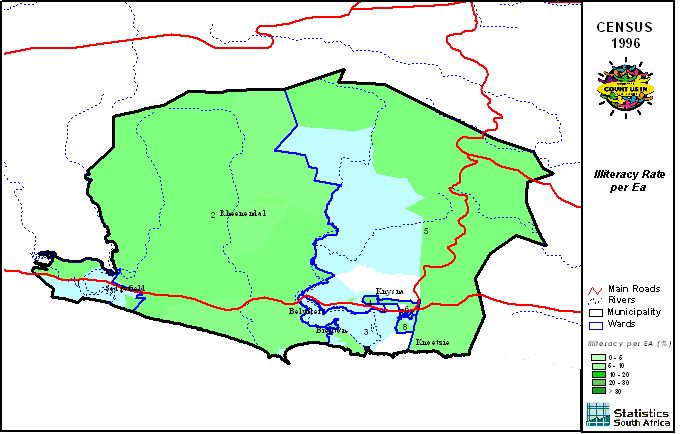 | Ward | Population | African | Coloured | Indian | White | Other | Male | Female | Unmarried | Married | Illiterate |