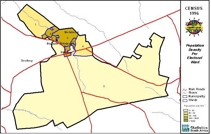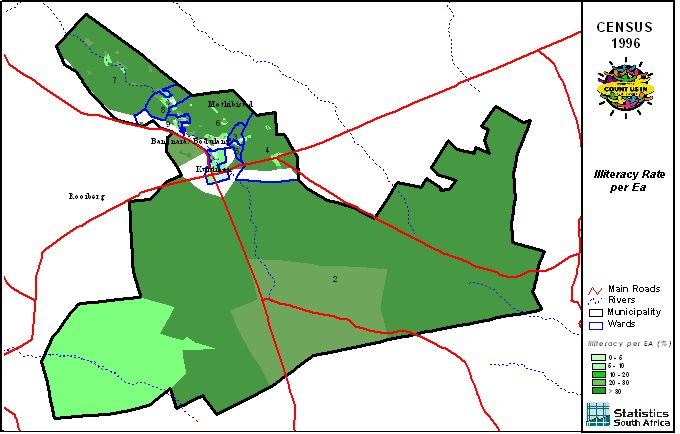 | Ward | Population | African | Coloured | Indian | White | Other | Male | Female | Unmarried | Married | Illiterate |