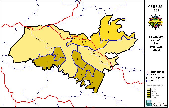 | Ward | Population | African | Coloured | Indian | White | Other | Male | Female | Unmarried | Married | Illiterate |