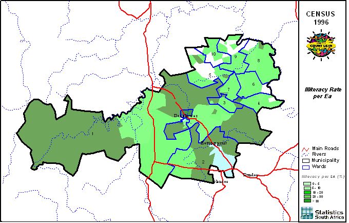 | Ward | Population | African | Coloured | Indian | White | Other | Male | Female | Unmarried | Married | Illiterate |