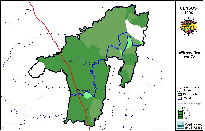 | Ward | Population | African | Coloured | Indian | White | Other | Male | Female | Unmarried | Married | Illiterate |