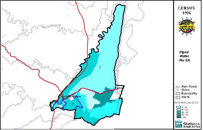 | Ward | Households | Formal Dwellings(%) | Telephone at Home(%) | Electricity(%) | Sanitation(%) | Piped Water to Dwelling(%) |