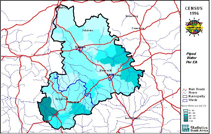| Ward | Households | Formal Dwellings(%) | Telephone at Home(%) | Electricity(%) | Sanitation(%) | Piped Water to Dwelling(%) |