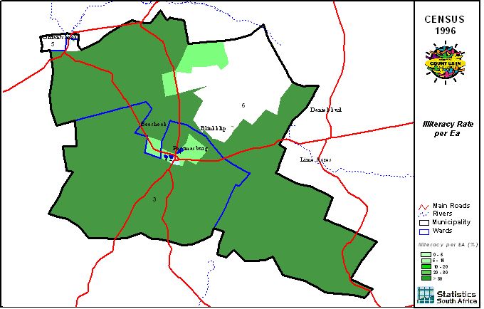 | Ward | Population | African | Coloured | Indian | White | Other | Male | Female | Unmarried | Married | Illiterate |