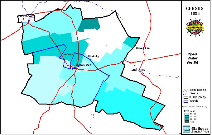| Ward | Households | Formal Dwellings(%) | Telephone at Home(%) | Electricity(%) | Sanitation(%) | Piped Water to Dwelling(%) |