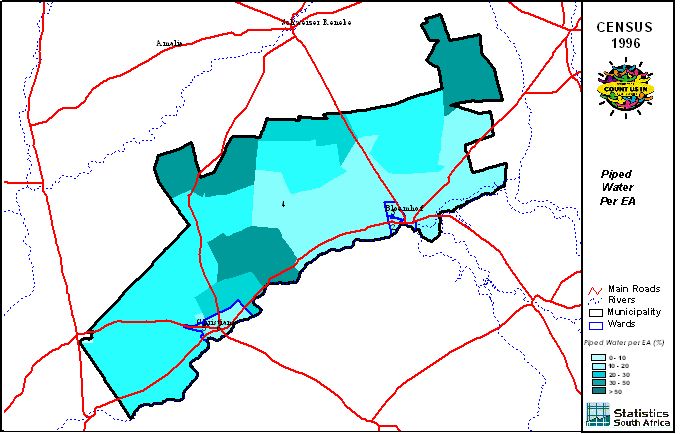 | Ward | Households | Formal Dwellings(%) | Telephone at Home(%) | Electricity(%) | Sanitation(%) | Piped Water to Dwelling(%) |