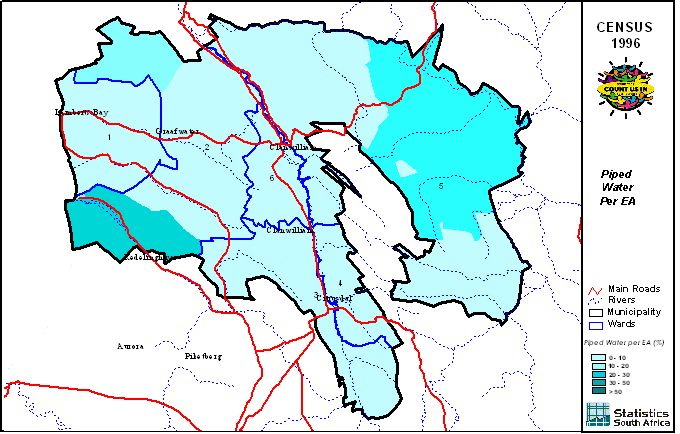 | Ward | Households | Formal Dwellings(%) | Telephone at Home(%) | Electricity(%) | Sanitation(%) | Piped Water to Dwelling(%) |