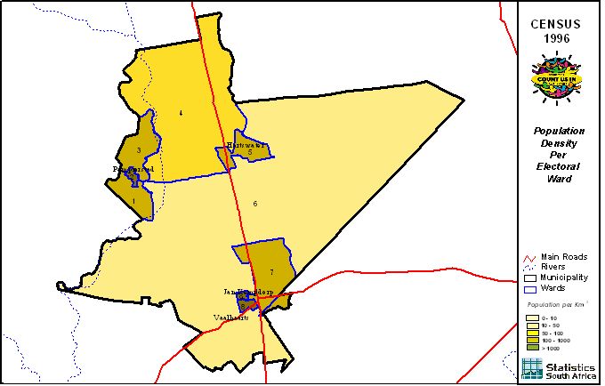 | Ward | Population | African | Coloured | Indian | White | Other | Male | Female | Unmarried | Married | Illiterate |