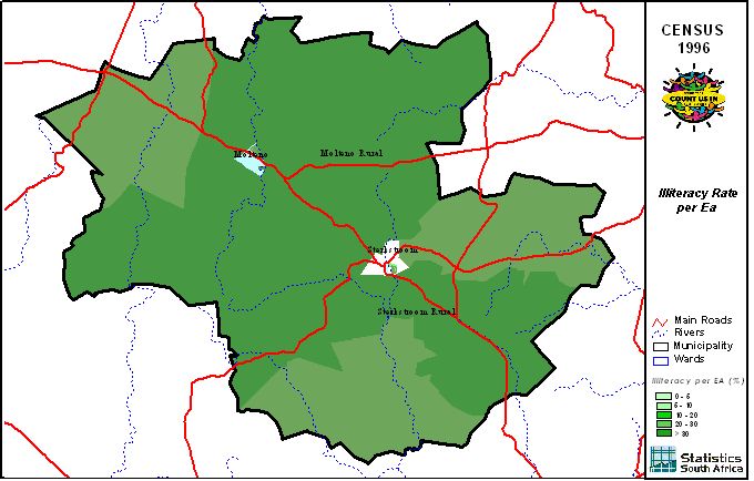 | Ward | Population | African | Coloured | Indian | White | Other | Male | Female | Unmarried | Married | Illiterate |