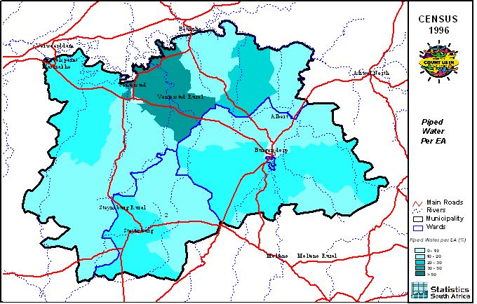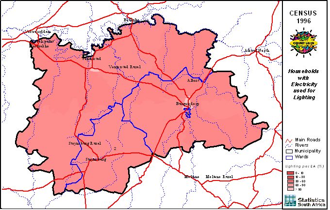 | Ward | Households | Formal Dwellings(%) | Telephone at Home(%) | Electricity(%) | Sanitation(%) | Piped Water to Dwelling(%) |