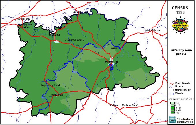 | Ward | Population | African | Coloured | Indian | White | Other | Male | Female | Unmarried | Married | Illiterate |