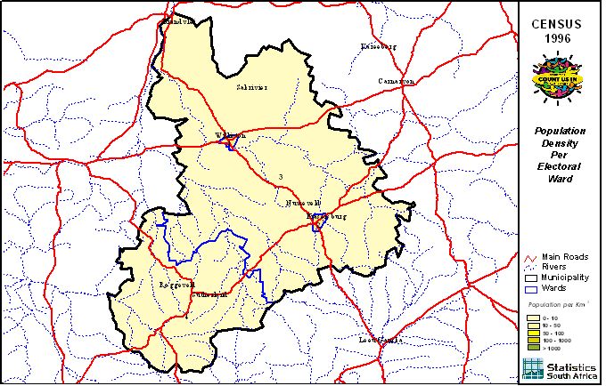 | Ward | Population | African | Coloured | Indian | White | Other | Male | Female | Unmarried | Married | Illiterate |