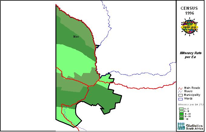| Ward | Population | African | Coloured | Indian | White | Other | Male | Female | Unmarried | Married | Illiterate |