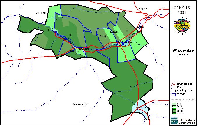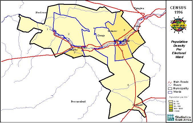 | Ward | Population | African | Coloured | Indian | White | Other | Male | Female | Unmarried | Married | Illiterate |