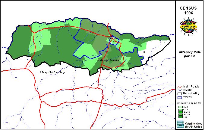 | Ward | Population | African | Coloured | Indian | White | Other | Male | Female | Unmarried | Married | Illiterate |